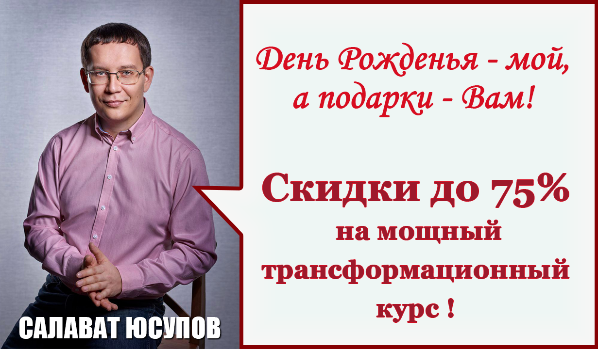 С 24 до 25 июня 23-59мск (только 2 дня) - Акция со скидкой 75% на мощный трансформационный курс Салавата Юсупова -
